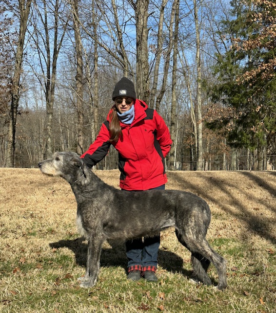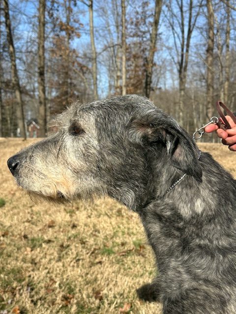 We brought Sia out of retirement for the IWCA National Specialty in 2024 and with an Award of Merit (which automatically qualified her for Crufts), she was among the 7 finalists. Quite an accomplishment for our non-showy girl, especially since she was the oldest wolfhound of the group.